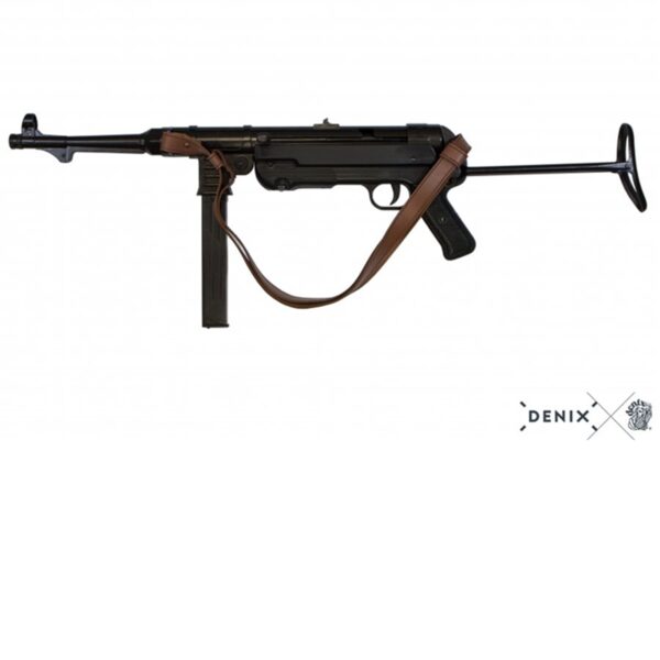 El MP40 (Maschinenpistole 40) fue diseñado por Heinrich Vollmer en 1940, con el objetivo de dotar a los soldados alemanes de un arma de asalto. Usaba cargadores de 32 cartuchos de 9mm y su alcance efectivo era de unos 100-150 metros. Era un arma muy fiable y de fabricación muy económica. Tenía un retroceso relativamente débil aún cuando se disparase en ráfagas, debido a su baja cadencia de fuego; esto le permitía ser más preciso a corta distancia (zonas urbanas, bosques, etc.) que otros subfusiles de la época, pero era menos efectivo a campo abierto por su escaso alcance; ésta fue una de las razones que motivaron el diseño del Stg-44, el predecesor de los modernos fusiles de asalto.