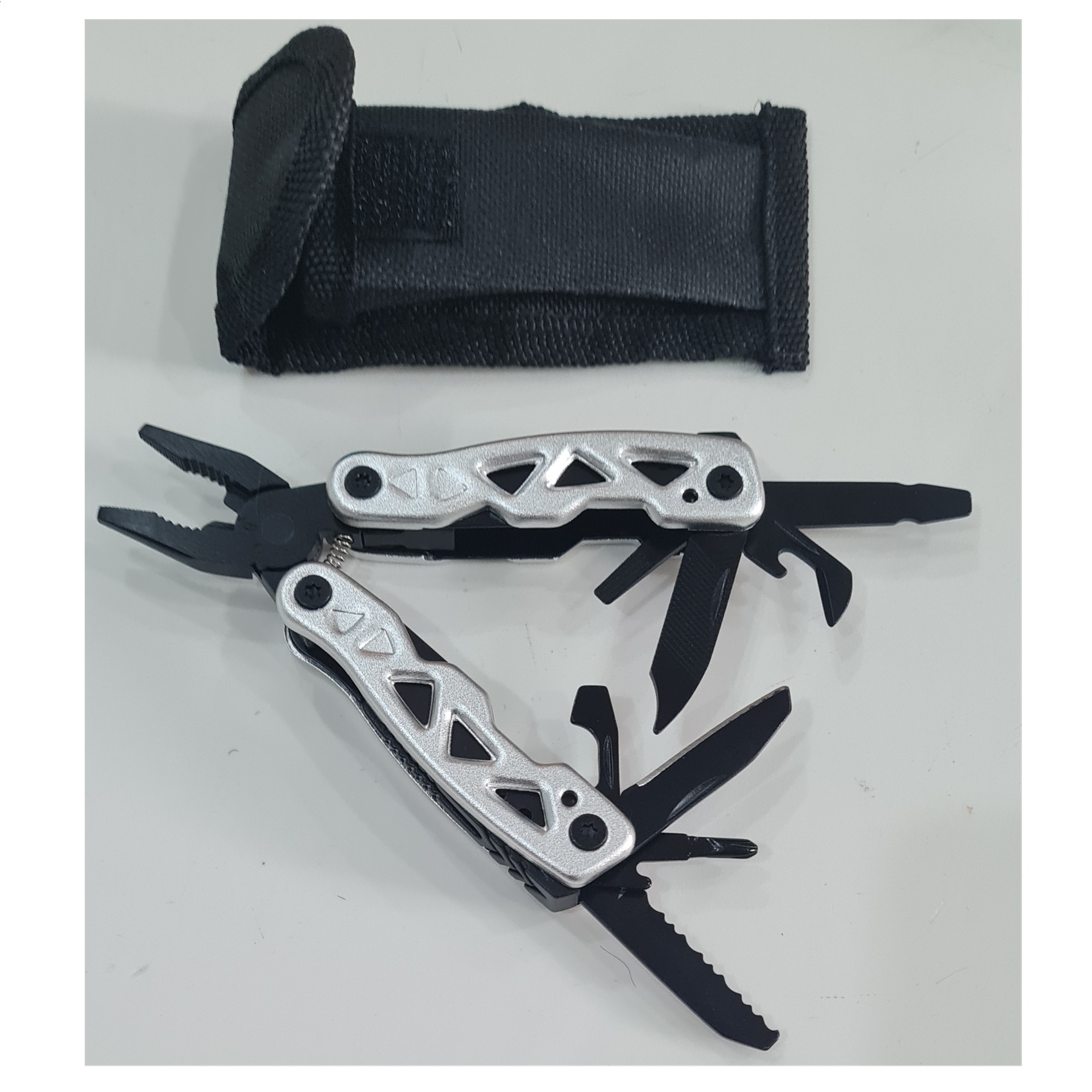 Alicate y herramienta multiuso chico plegable mas 8 heramientas